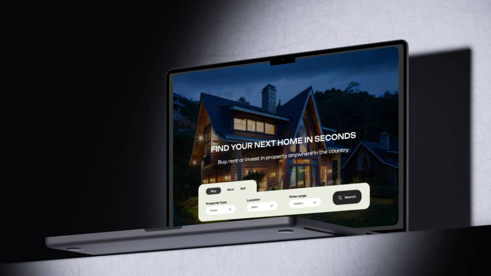 Hero section with advanced property search (Buy / Rent toggle)