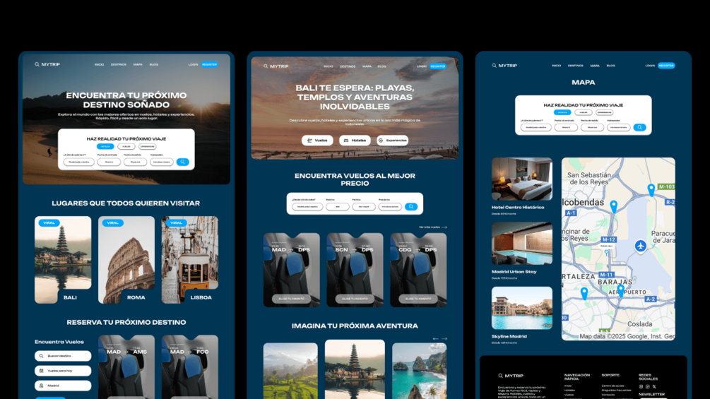 Descubre Findmytrip, una plantilla moderna y totalmente editable en Figma pensada para crear sitios web de agencias de viajes, buscadores de vuelos y hoteles o proyectos turísticos. Ideal para diseñadores que buscan inspiración, emprendedores que necesitan un diseño funcional, o para aprender UI/UX en casos reales.